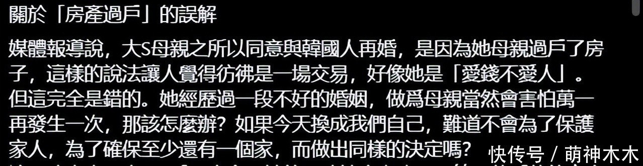 众所周知,大S目前遗产争议焦点主要在豪宅之上,一个房子欠着房贷、一个房子早就转移到了S妈名下,外界因此察觉到S妈嘴上说着爱女儿,行动上还是吸血大S养全家,结果陈孝志却说S妈是害怕大S和具俊晔婚姻不幸福,为了保护家人才要走了房子。