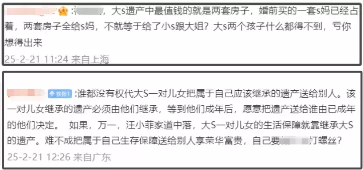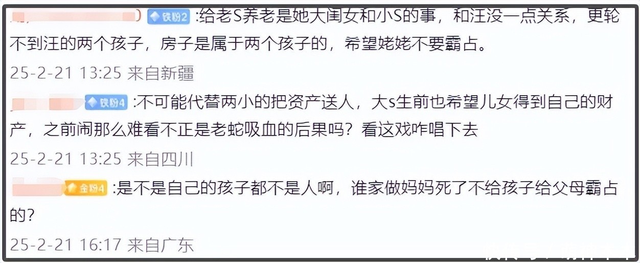 ——所以S妈到底保护了大S啥?保护着保护着,把大S生前买的豪宅保护到了自己名下,在大S离世后没见好好安排她的子女,倒是一心追着前女婿汪小菲要钱。